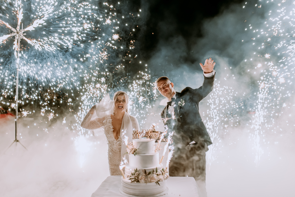 Fontanny iskier – są idealnym uzupełnieniem dla ciężkiego dymu podczas pierwszego tańca. Wystrzał odbywa się w wybranym momencie utworu – może to być refren, uniesienie czy sam finał tańca. Fontanny iskier realizujemy również jako oprawę podczas podania tortu.