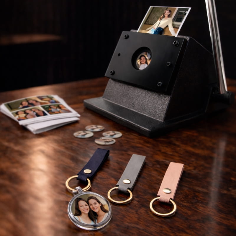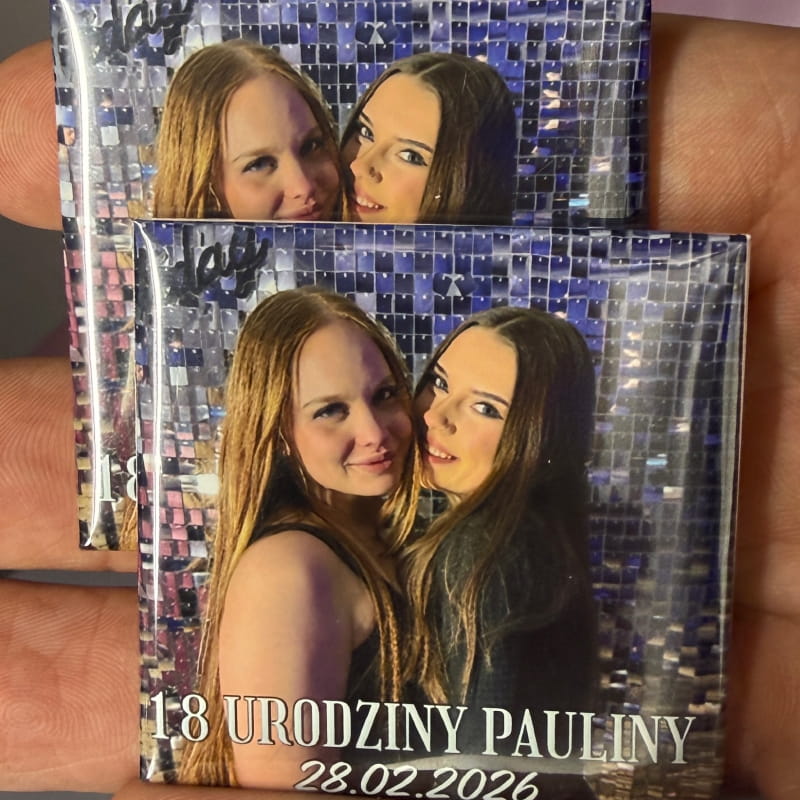 W ofercie również personalizowane breloki ze zdjęciem tworzone na żywo podczas imprezy – goście robią zdjęcie, a my w kilka minut zamieniamy je w gotową pamiątkę.