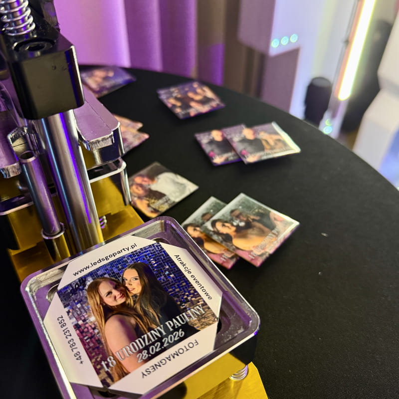 Goście pozują -> my drukujemy -> a po chwili trzymają w dłoni magnes z własnym zdjęciem, który trafi prosto na lodówkę, tablicę lub do biura.